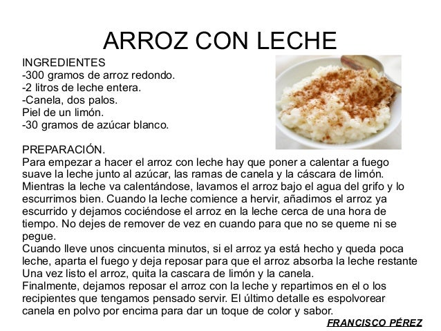 Find deals on leche de arroz in dairy on amazon. Arroz con leche recetas de cocina kiwilimon. Cmo se hace el arroz con leche. Preparar esta receta en casa es muy fcil y existen todo tipo de opciones entre las que poder elegir. As encontramos desde el estilo ms tradicional, vamos la olla de toda la vida, hasta la posibilidad de hacerlo en microondas, pasando por la olla express, la thermomix o la olla gm. Plátano frito 8 recetas fáciles. Recetas de plÁtano frito ingredientes paso a paso consejos. El plátano frito es un plato muy popular en latinoamérica y centroamérica, especialmente en méxico. Cmo hacer arroz con leche comedera recetas de. El origen de esta receta ser remonta al siglo vii, cuando los rabes que llegaron a la pennsula ibrica. Con el tiempo fue popularizandose hasta llegar a asturias, dnde por su calidad de la leche es un autntico manjar. Receta de arroz con leche fcil. Aprende esta receta de arroz con leche fcil y sencilla de preparar. Receta de arroz con leche peruano en 5 pasos 2019. Uno de los dulces o postres ms famosos del per y considerado oriundo de lima por tradicin, es el arroz con leche. La gastronoma peruana tiene una gran variedad de postres que en muchos casos son el resultado de la fusin y mestizaje, desde la poca de la colonia. Arroz con verduras danza de fogones. Instrucciones. Cocina el arroz siguiendo las instrucciones del paquete (yo usé 1 taza de agua ó 250 ml y estuvo listo en 25 minutos, aunque el agua y el tiempo de cocción varían en función de la marca). Arroz con leche thermomix receta casera. Receta de arroz con leche thermomix. Si tienes una thermomix en tu cocina y te gusta utilizarla para hacer todo tipo de recetas, te proponemos a continuación una receta con la que preparar un rico arroz con leche thermomix, verás que sencillo resulta.